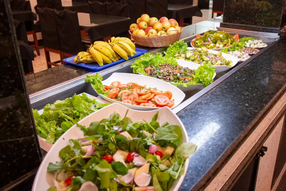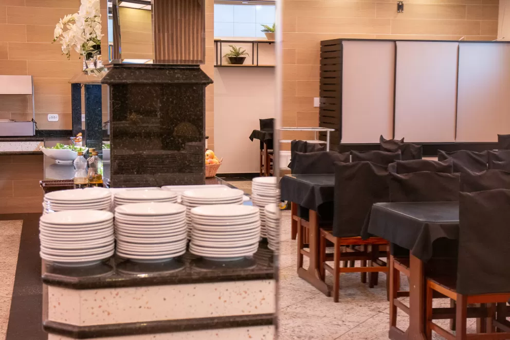 O hóspede do Eldorado Palace Hotel conta com café da manhã (de 6h às 8h) sempre incluído na diária, almoço e jantar (opcionais somente de segunda à quinta-feira).