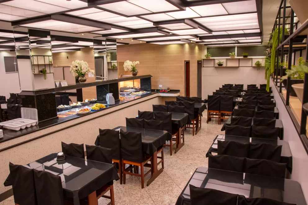O hóspede do Eldorado Palace Hotel conta com café da manhã (de 6h às 8h) sempre incluído na diária, almoço e jantar (opcionais somente de segunda à quinta-feira).